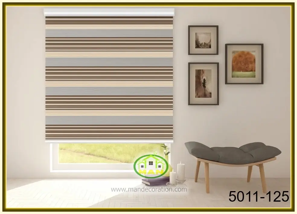 پرده زبرا شب روز ترک قهوه ای ساده کد:Z271 – 119